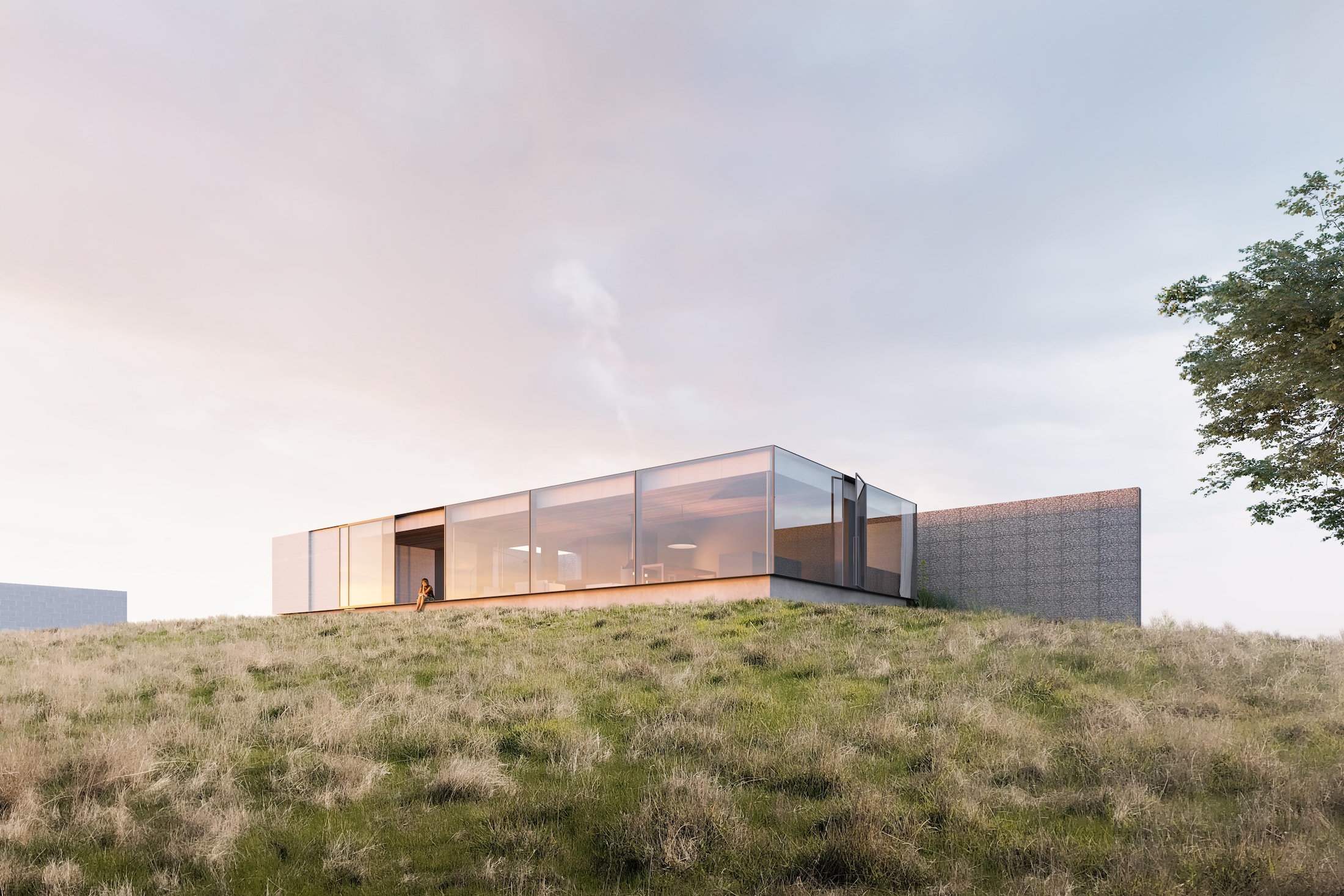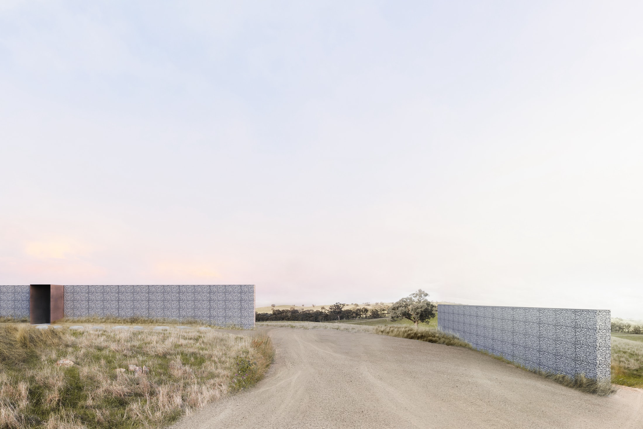 On approach a vast gabion wall of local rock cuts across the landscape, acting as a demarcation point and an interface between buffeting winds. Drawing closer, the building beyond slowly begins to reveal itself.